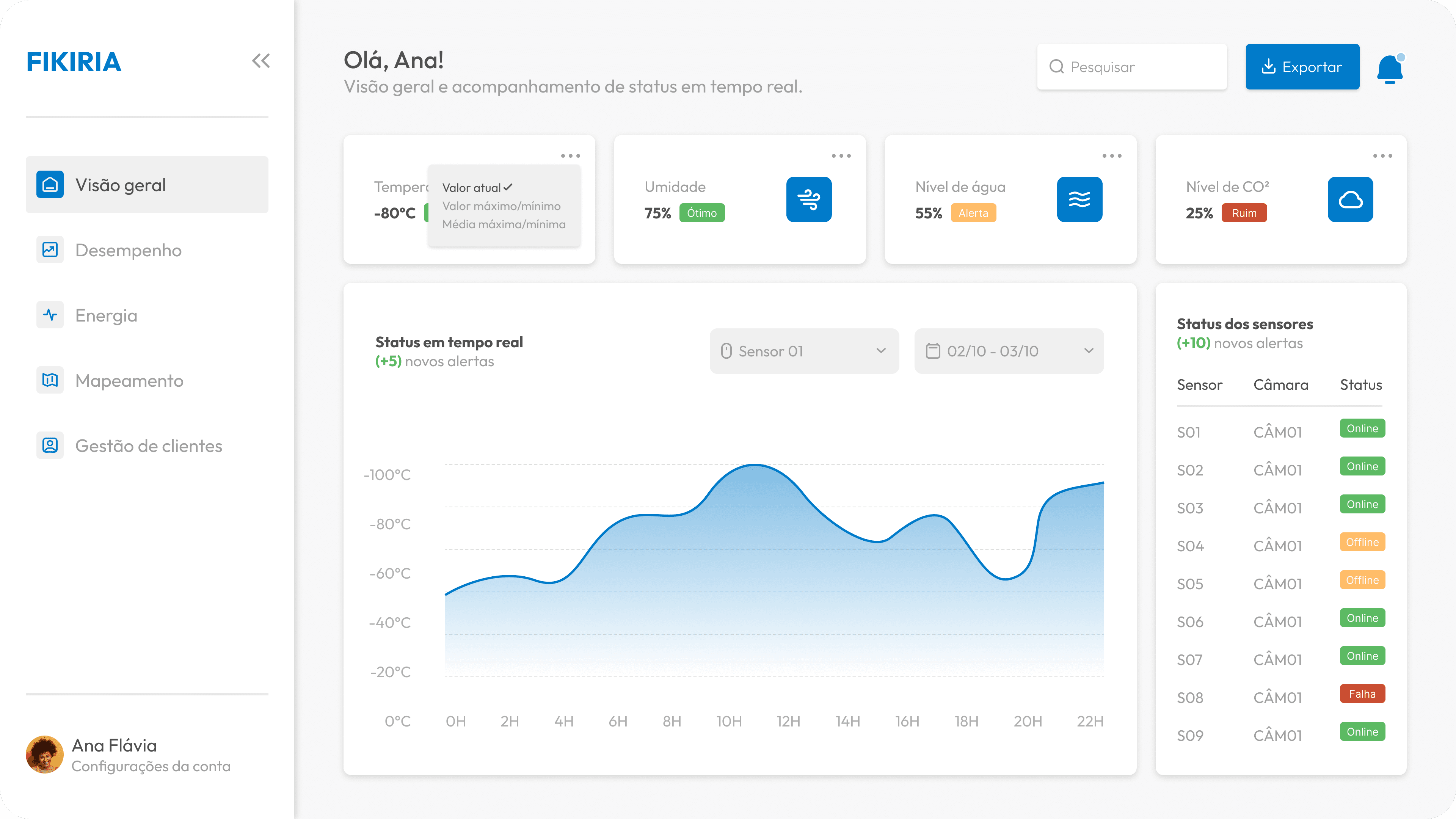 “O dashboard é super intuitivo. Consigo monitorar temperatura e umidade de várias unidades sem sair do escritório.”